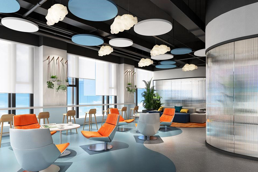 地面獨特的裝飾、裸露的天花構造和異性造型等豐富多元的場景設計允許員工自由選擇最佳的工作方式完成每日的工作,以其創(chuàng)新的設計連接起周邊的工作區(qū),并吸引人們來此交流匯聚,成空間的核心紐帶。每天的早會由此開始,團隊協(xié)作會議也在此愉快地開展。會議室和安靜的則用于更正式的會議或專注的工作行為,大型社區(qū)和茶水吧臺區(qū)域則更有利于促進員工間的交流協(xié)作和即興互動。