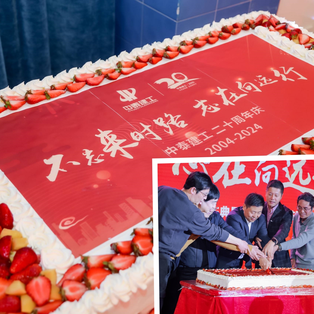 20周年慶典蛋糕。它不僅僅是一個(gè)蛋糕,更是中泰建工與各位合作伙伴深厚情誼的象征,是我們共同孕育的果實(shí),甜蜜而珍貴,見證了中泰建工20年的風(fēng)雨兼程,更承載了每一位員工辛勤付出的汗水與努力。